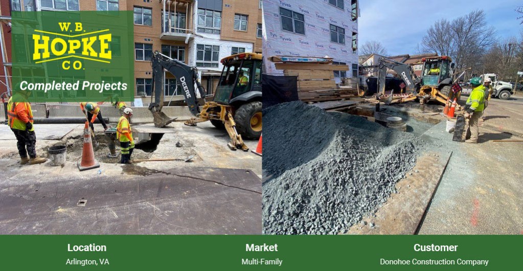 W.B. Hopke is a fourth generation, family-run construction business focused on building high quality utility infrastructure and lifelong careers. Hopke is located in Alexandria, VA and works throughout DC, Maryland, and Virginia. With almost 70 years of experience, Hopke prides itself on repeat customers across all kinds of market segments – schools, churches, data centers, distribution facilities, multi-family, mixed use, residential subdivisions, senior living, self storage, heavy highway, retail, commercial office, automotive, stream restoration, and parks.